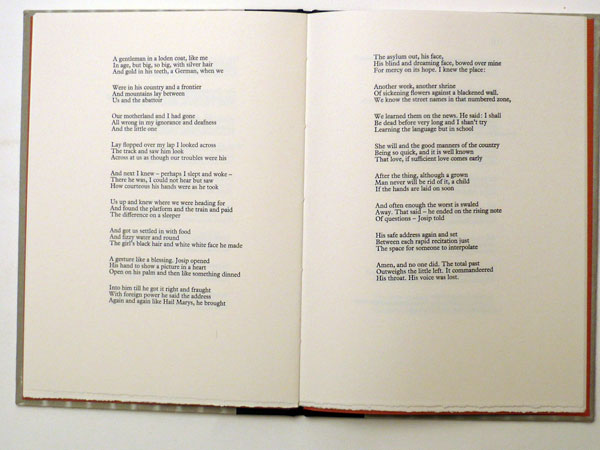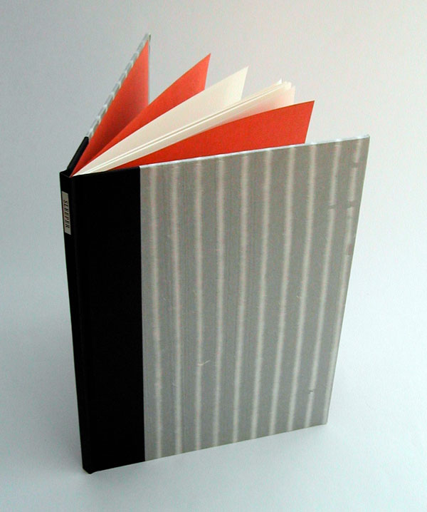- The text is set in 12 pt Plantin and printed on Zerkall mouldmade paper on an Arab treadle platen press. The illustration is printed litho by Livesey Ltd on the same paper. The book is sewn by hand and quarter bound in black cloth and grey handmade Japanese paper with terracotta end papers in Hannemuhle paper.