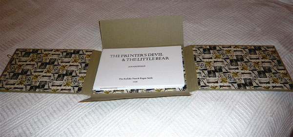 - The pages are presented in a portfolio lined with paper based on Jen’s linocuts. They are unbound in order to allow the reader to rearrange them, study them, pin them on the wall or read them aloud.